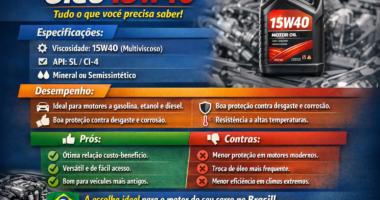 O óleo 10W40 semi-sintético é um lubrificante para motores que combina a base de óleos minerais e sintéticos, oferecendo um equilíbrio entre custo e desempenho. A classificação 10W40 refere-se à viscosidade do óleo, onde o “10W” indica a fluidez em temperaturas baixas e o “40” representa a fluidez em temperaturas mais elevadas. Essa propriedade é crucial, pois permite que o óleo flua rapidamente durante a partida do motor em climas frios, ao mesmo tempo que mantém uma película protetora eficaz sob altas temperaturas.
